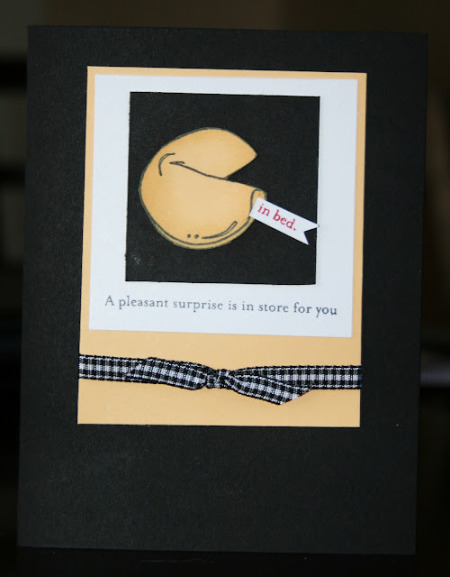 Here is a simple little card that is packed with a punch of funny thanks to a cute little stamp set by A Muse Art Stamps called "Fortune Cookie Words set." The inside sentiment says, "The cookie has spoken." HA!